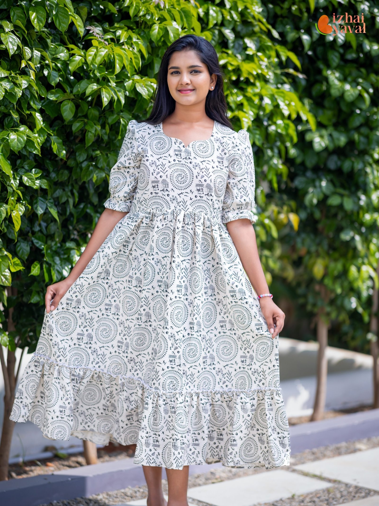 Step into effortless elegance with our Beige Handblock-Style Printed Maxi Dress (007). Made from soft, breathable cotton, this dress ensures all-day comfort while keeping your style effortlessly chic. The subtle beige tone paired with intricate circular ethnic patterns gives it a timeless and sophisticated appeal.